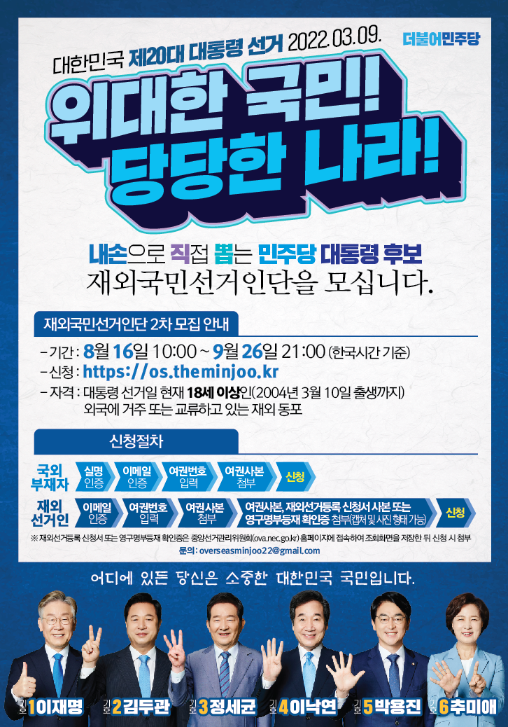 제20대 대통령 후보자 선출을 위한 경선 '선거인단 별 투표일 안내'
