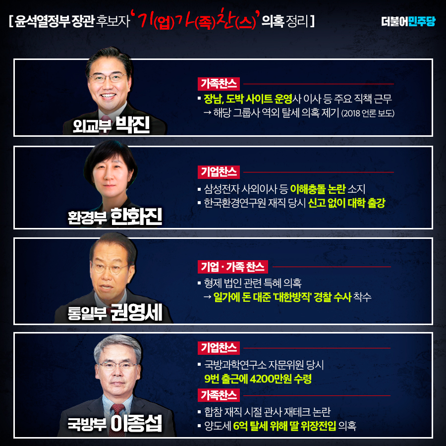 역대 최악 불공정 내각 탄생? 윤석열정부 장관 후보들 의혹 정리