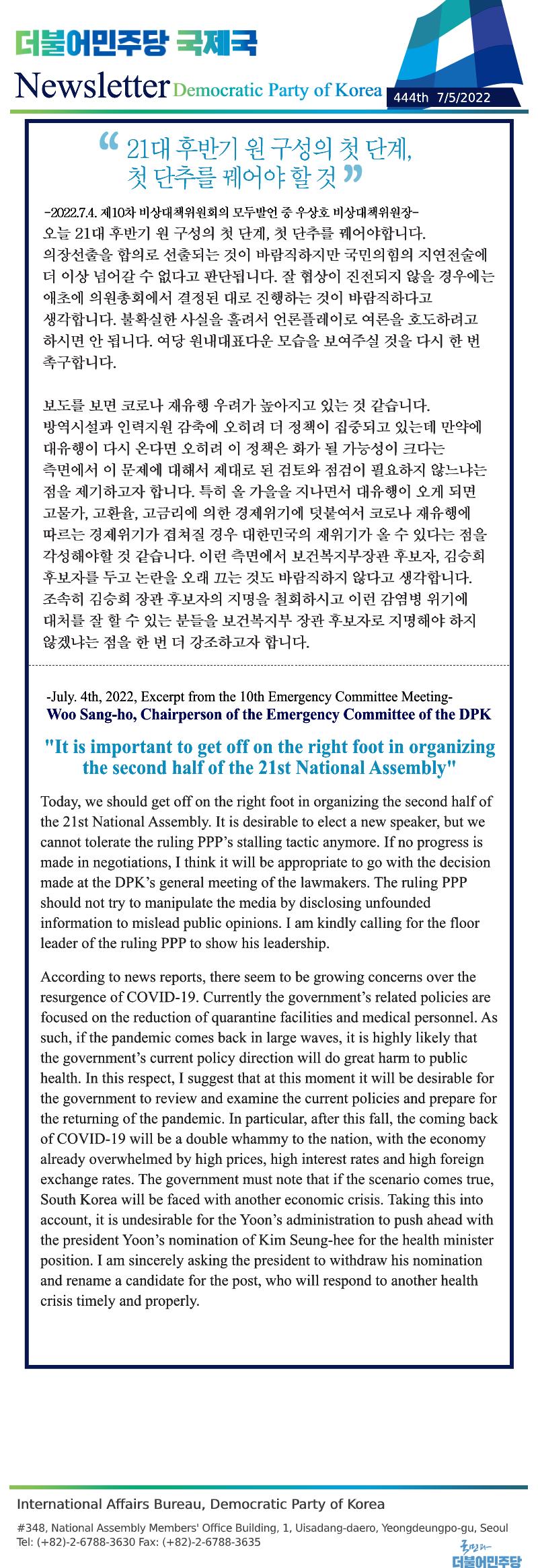 [444th Newsletter] Excerpt from the 10th Emergency Committee Meeting