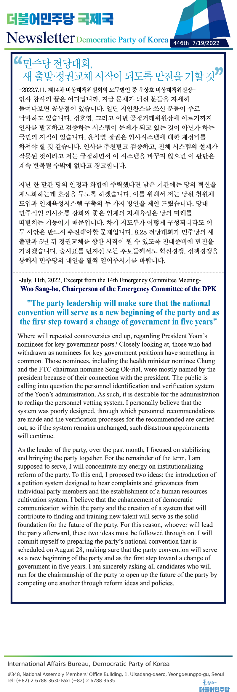 [446th Newsletter] Excerpt from the 14th Emergency Committee Meeting