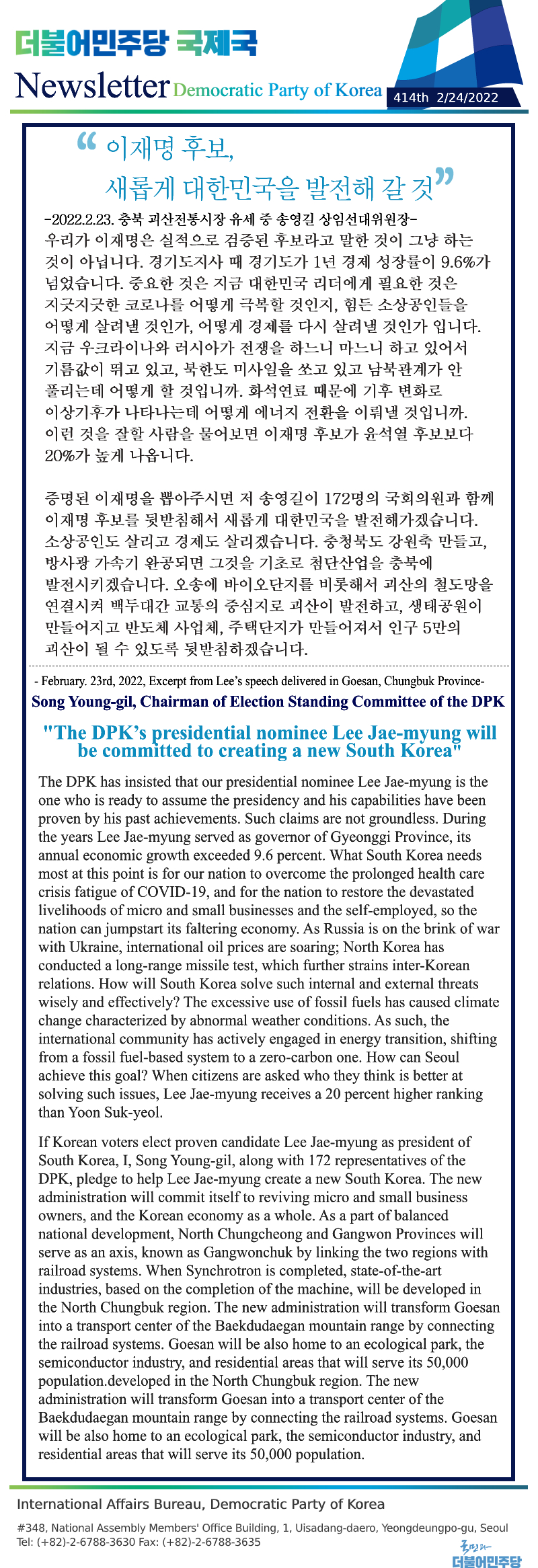 [414th Newsletter]Excerpt from Lee’s speech delivered in Goesan, Chungbuk Province