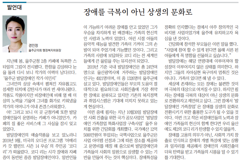 경민정-장애를 극복이 아닌 상생의 문화로-20201123 경상일보