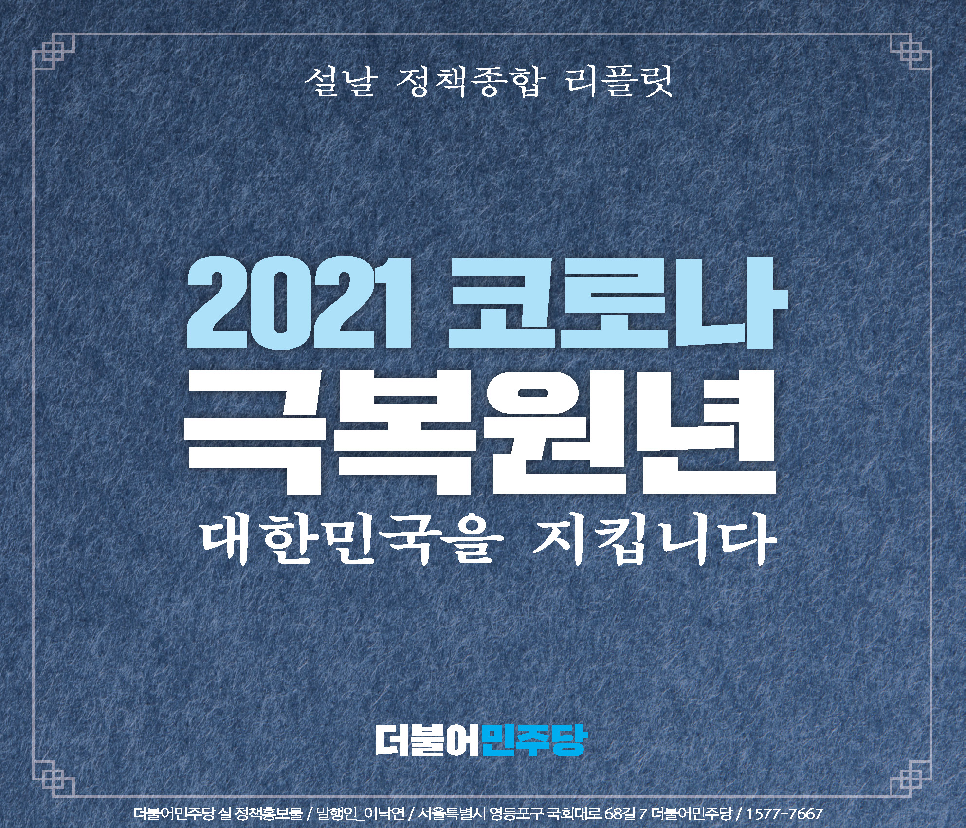 설날 정책종합 리플릿: 2021 코로나 극복원년 "대한민국을 지킵니다"