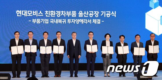 한편 이날 현대모비스는 울산 이화산업단지에서 친환경차 핵심부품 울산공장 기공식을 개최했다. 행사에는 문재인 대통령을 비롯해 홍남기 경제부총리, 성윤모 산업통상자원부 장관, 송철호 울산시장, 박정국 현대모비스 사장 등이 참석했다.