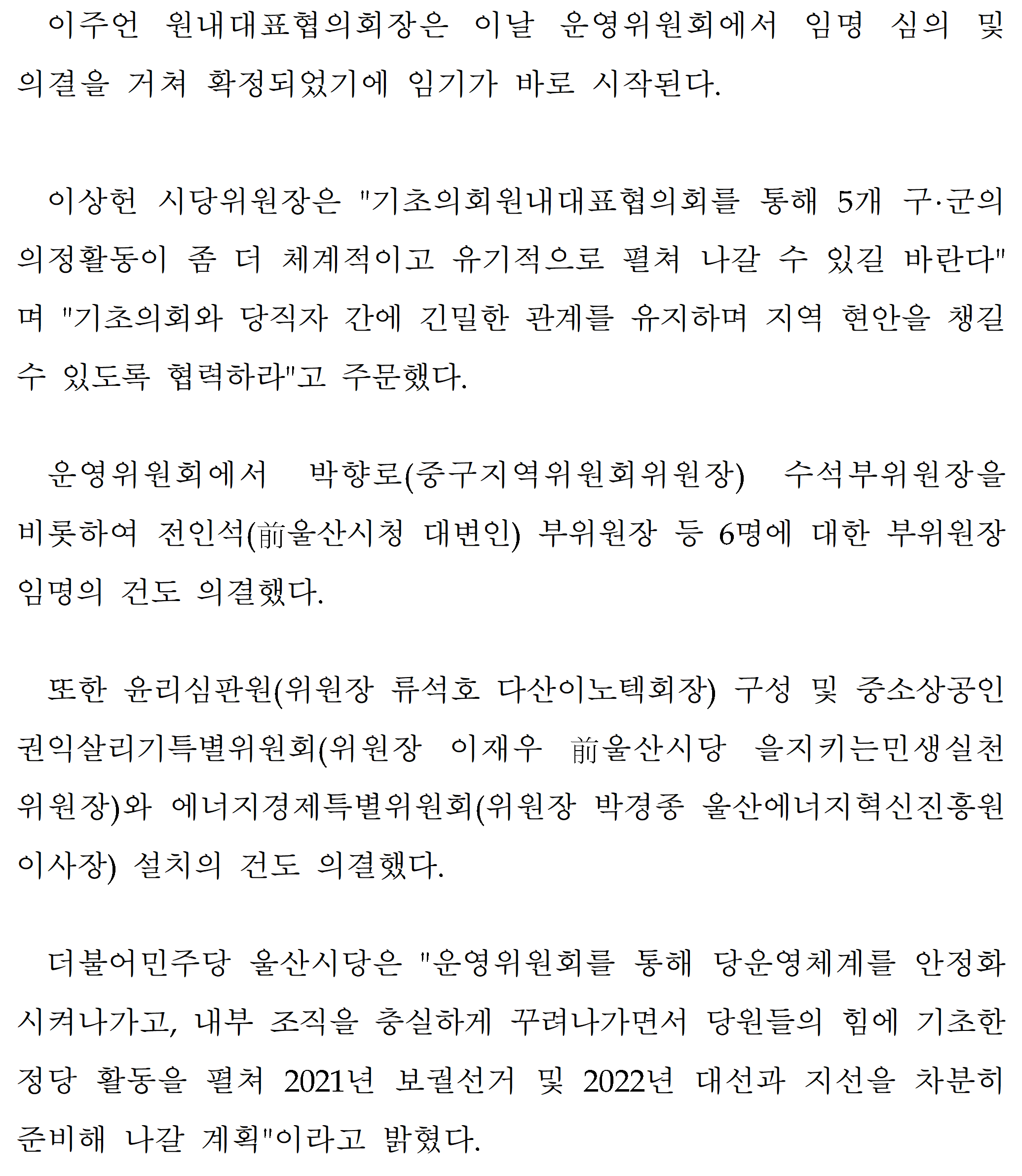 [보도자료]제2차 운영위원회 열어 기초의회원내대표협의회장 선출 등 안건 처리-20201011